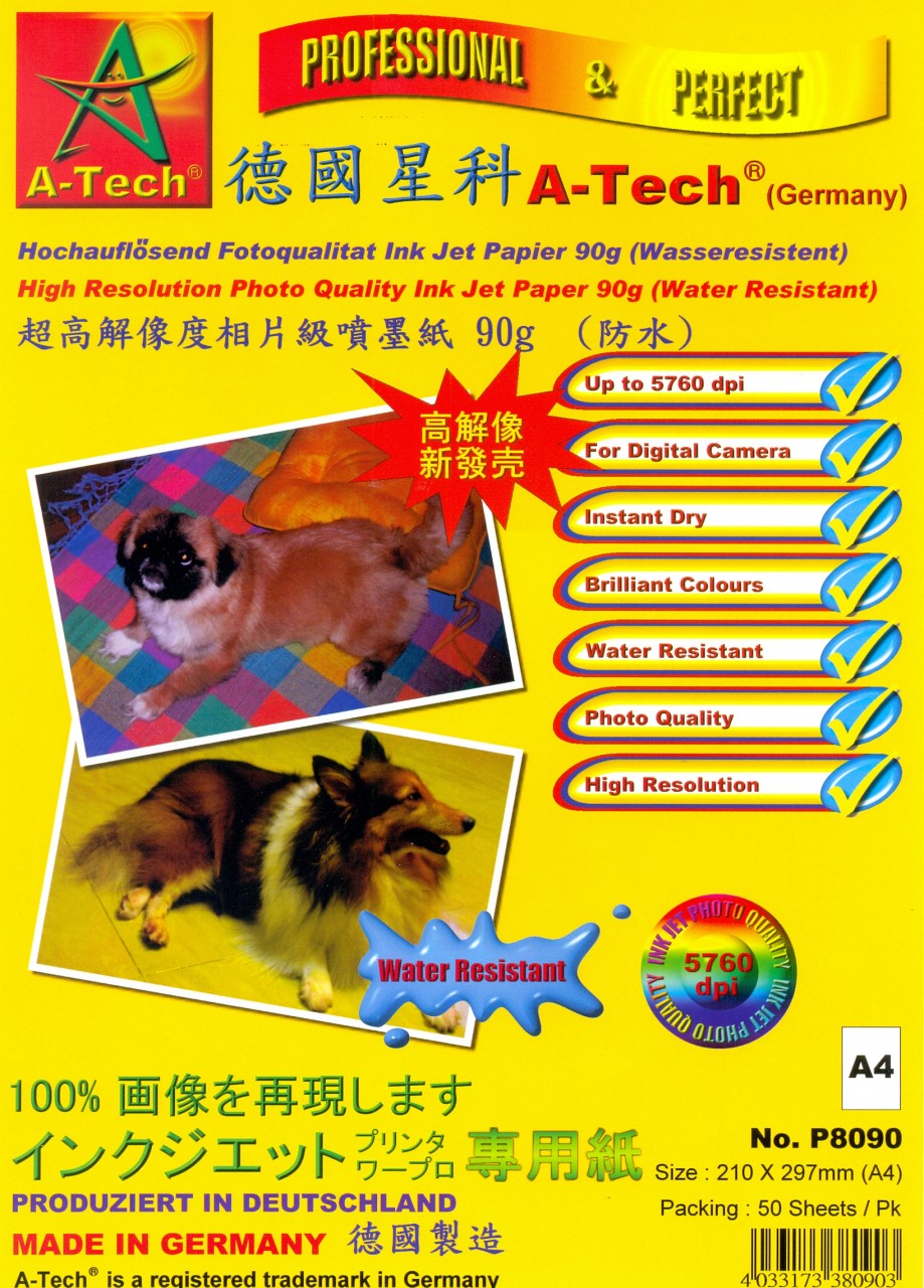 【貨品名稱】德國星科 A-TECH P8090 A4 超高解像度防水噴墨紙(50張裝) 90g