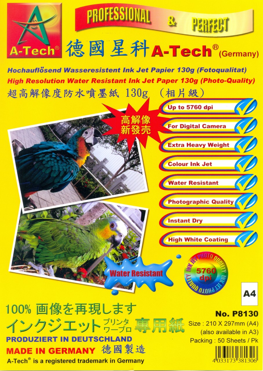 【貨品名稱】德國星科 A-TECH P8130/P8131 A4/A3 超高解像度防水噴墨紙(50張裝) 130g