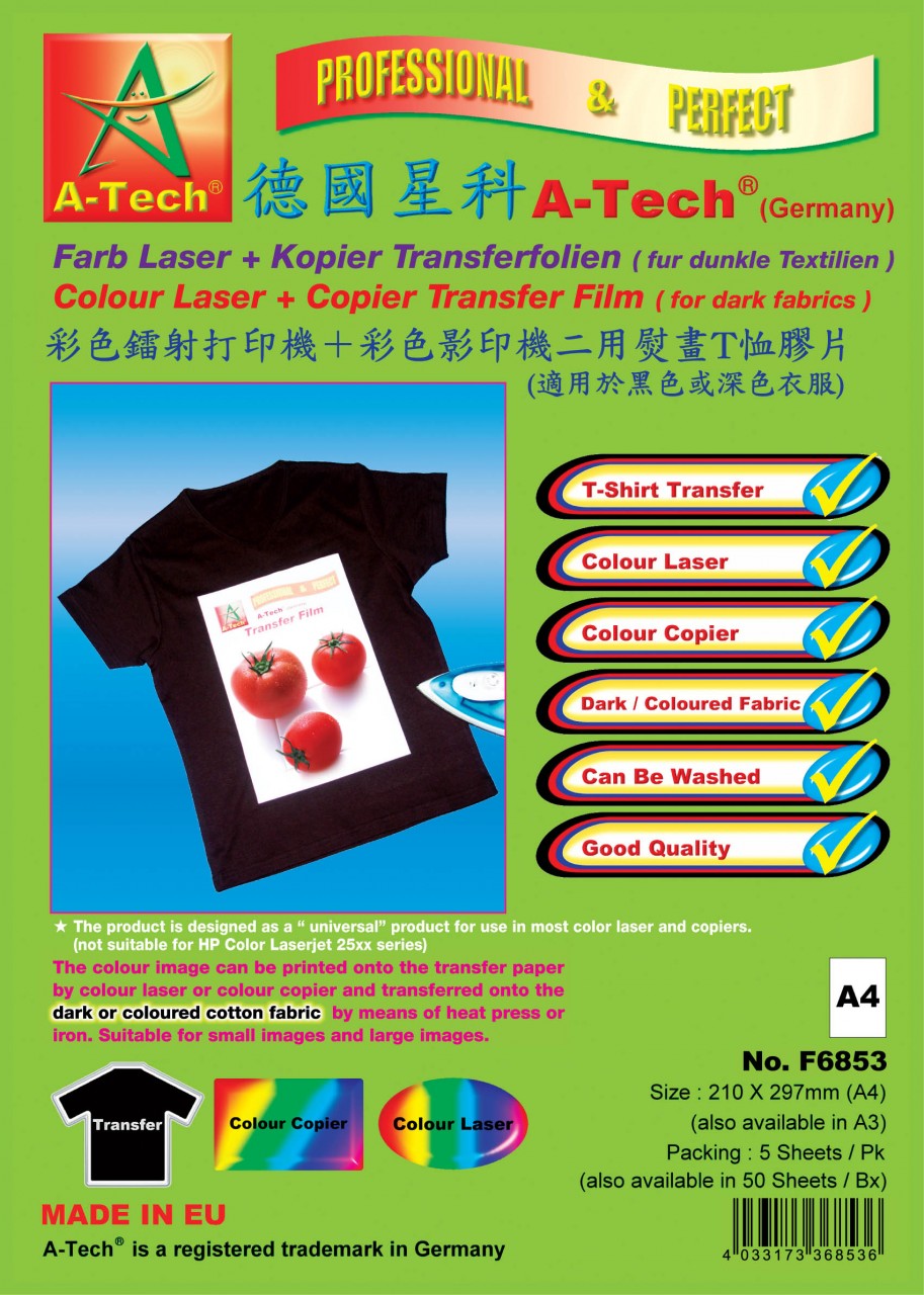 A-Tech F6853/F6854 Colour Laser + Copier T-shirt Transfer Film (for dark fabric) A4/A3