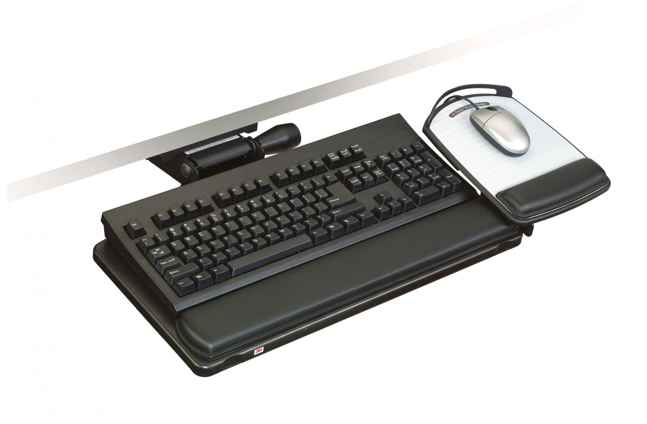 Enjoy the freedom of lever-free height adjustment and unique lateral adjustment, so you can fine tune the keyboard's position even in less than ideal workspace situations. Compatible with ergonomic keyboards. For corner or straight-on workstations that can accept a 23" track.
