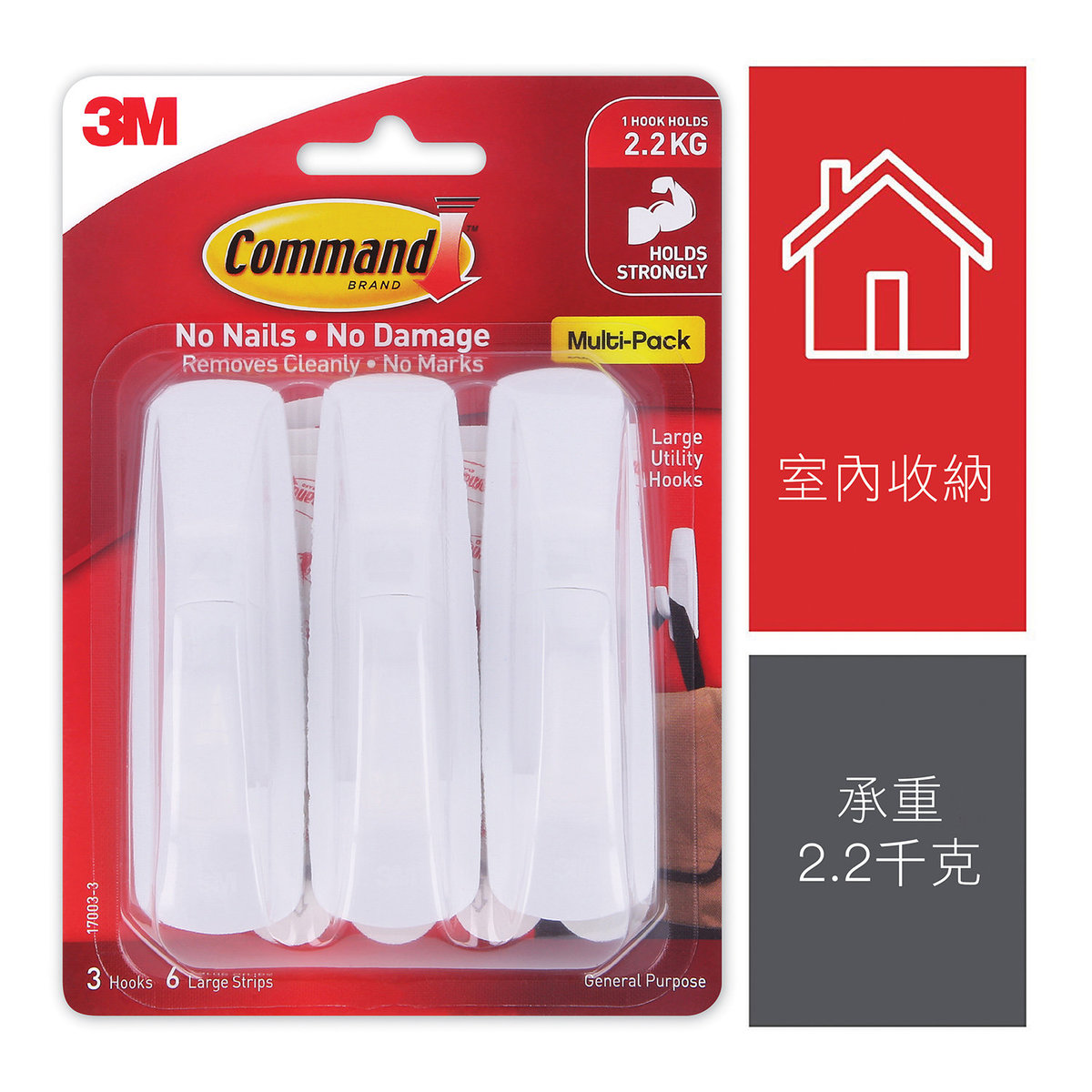 【貨品名稱】3M Command™ 17003-VP 無痕™ 實用型掛鈎-大型(3個裝特惠裝)