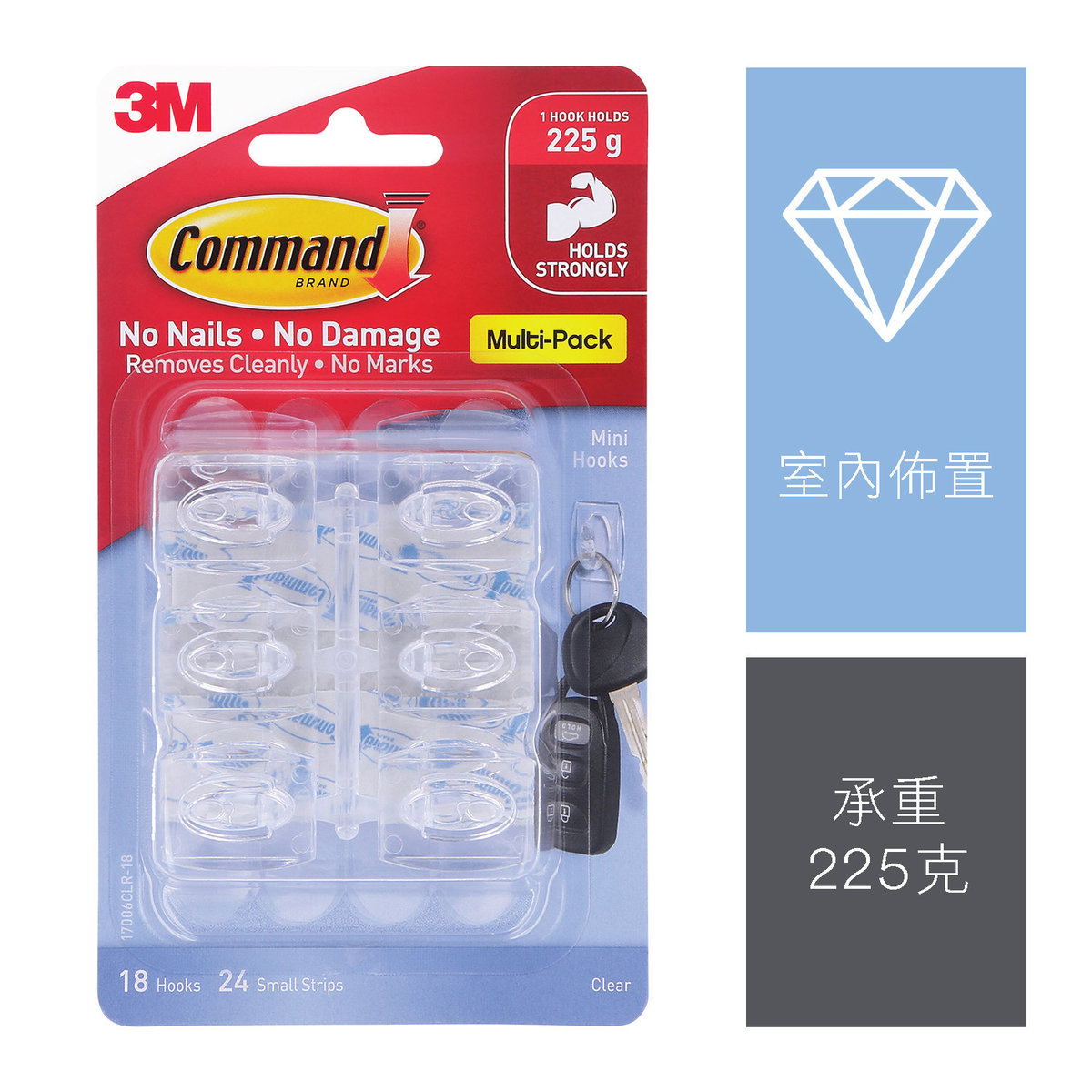 【貨品名稱】3M Command™ 17006CLR-18 無痕™ 透明<迷你>掛鈎(18個優惠裝)