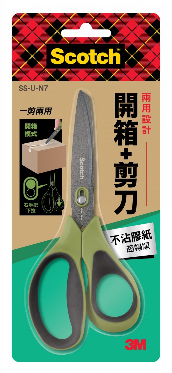 【貨品名稱】3M Scotch™ SS-U-N7 不沾黏特殊塗層不銹鋼開箱剪刀7英寸(7") 綠色