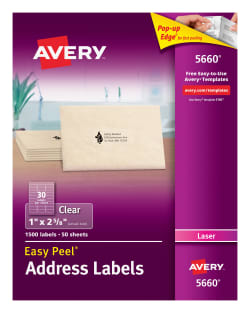 Click the button below to add the AVERY 5660/5661/5662/5663/5664/5667 Laser Labels-Clear (Letter Size) to your wish list.