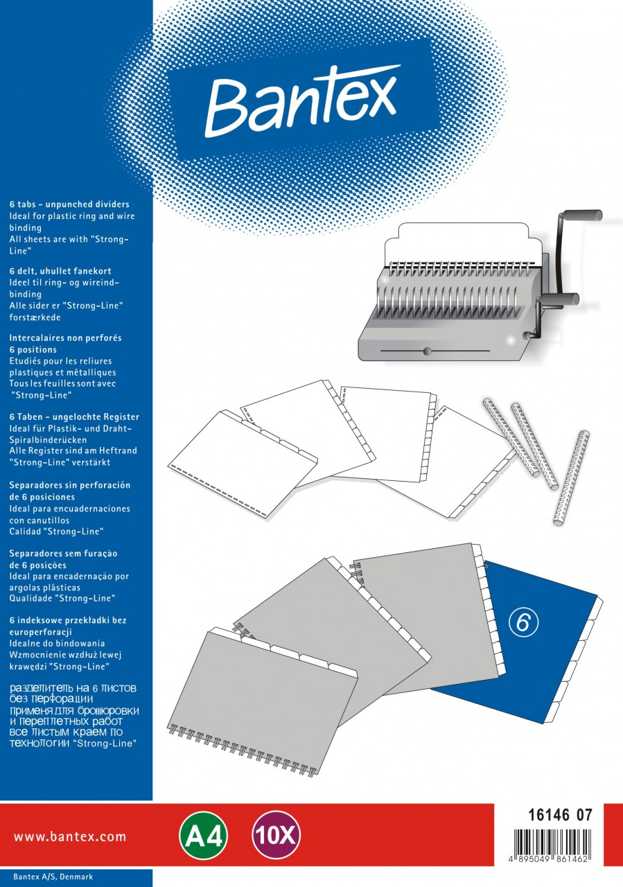 【貨品名稱】BANTEX 16146-07 A4 6級咭紙索引分類頁(10套/包)-釘裝用