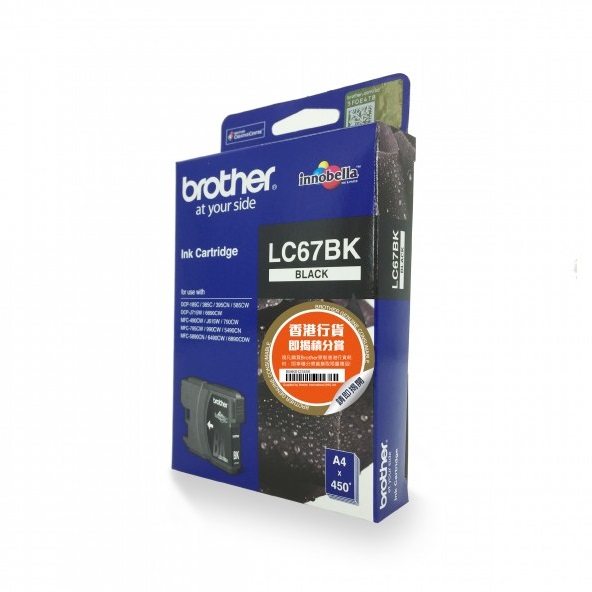 【貨品名稱】BROTHER LC67 BK/C/M/Y 墨盒 (標準)