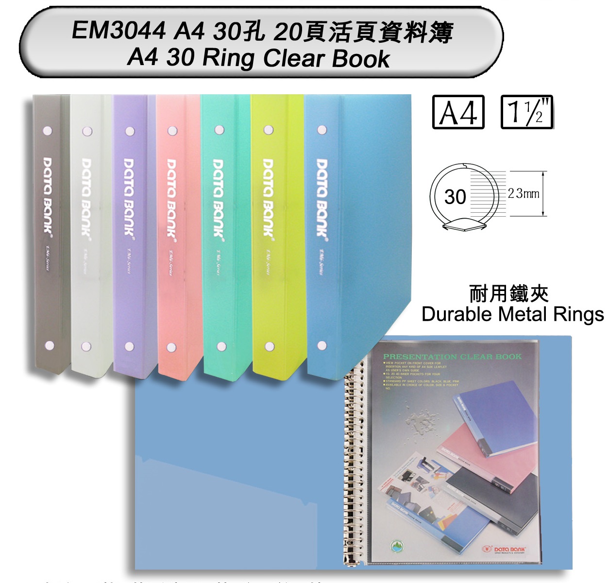 【Product】DATA BANK EM3044 A4 20's Refillable Clear Books 1-1/2"