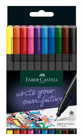 FABER-Castell 151610 Grip Finepen 三角幼線筆(10色紙盒裝) 0.4mm