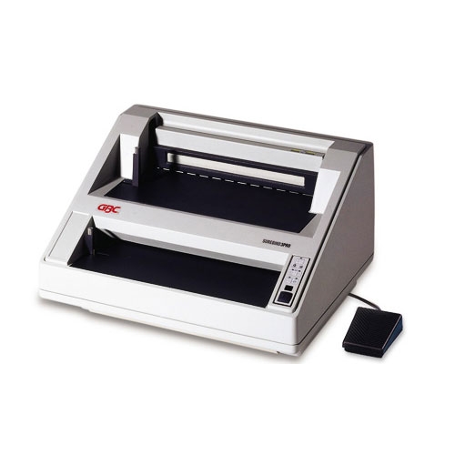 Stylish electric strip binding system designed specifically for high volume usage. Features an integrated de-bind function which lets you add or delete pages easily.