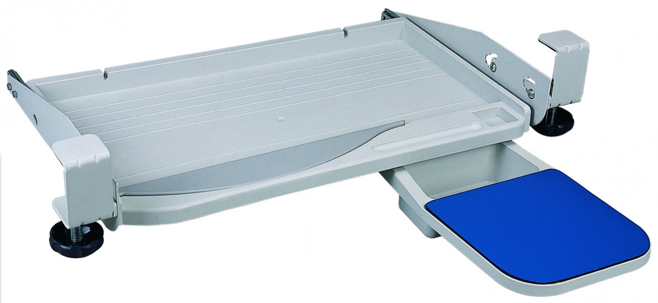 ●鑽枱式設計,方便易用,可夾檯之厚度最多為6.5CM,適用於市面常見的標準鍵盤