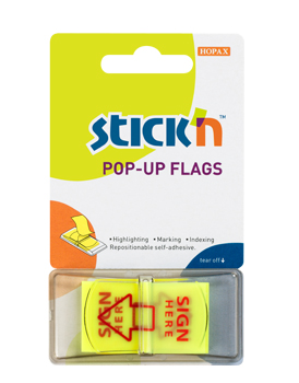 【貨品名稱】HOPAX STICK'N 26015 螢光黃色"SING HERE"旗仔(50張)