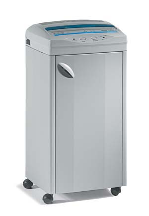 Carbon hardened cutting knives, unaffected by staples and metal clips. High precision design of cutting knives allows high shred loads with low power consumption. Motor thermal protection. 24 hours continuous duty motor: no duty cycle or timed cool down period. Wide 300mm throat and conveninet 85-liter high quality steel cabinet.