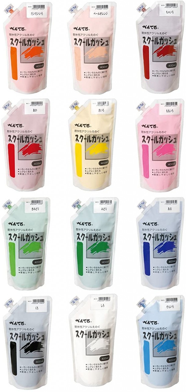 ・丙烯樹脂系列的不透明顔料。・可以用水稀薄(稀薄量最適合為30%左右)。・顔色乾後,防水性優良。・可於木,紙箱,布,發泡膠,塑膠,石,罐等等非油性面的各種材料上着色。(因應材料的關係,也會有部份不能着色的情況,所以做完測試後才使用。) ・最適合共同製作的顔料。・容量:400ml (金,銀200ml)・全24色