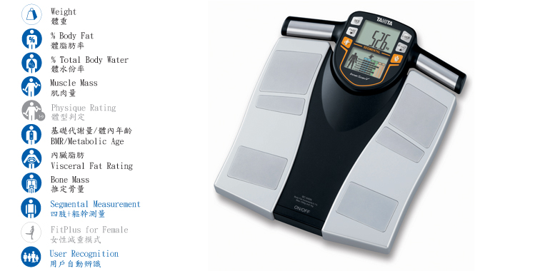 該指數可以顯示人體體內的脂肪含量。 內臟脂肪含量指人體腹腔內的脂肪含量,包圍著軀幹部份的關鍵性人體器官。研究表明, 即使體重與體內脂肪含量保持穩定水準, 隨著年齡增長,脂肪極易轉移至人體軀幹部份,尤其是在女性絕經之後, 而保證體內內臟脂肪含量始終于健康水準,可以有效的減少疾病,如心臟病、高血壓及糖尿病等。 TANITA身體成份分析儀將內臟脂肪等級劃分為 1 – 59 個等級。