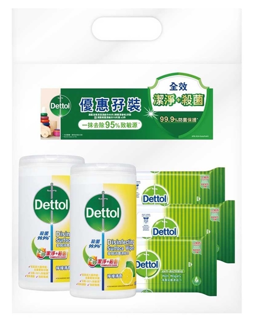 【貨品名稱】滴露 - 消毒清潔濕紙巾檸檬清香味80片孖裝+10片裝殺菌濕紙巾 - 3297541