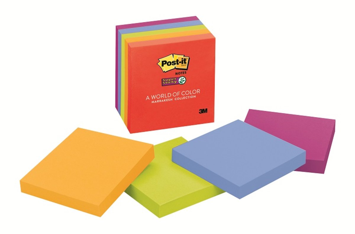 【貨品名稱】3M 報事貼 654-5SSAN 超強黏貼螢光色系便條紙 (5色 x 90張)