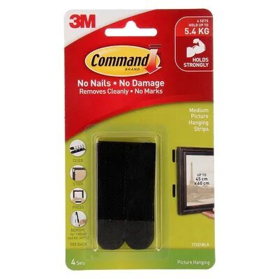 【貨品名稱】3M Command™ 17201BLK 無痕™ <黑色>魔術貼-中型(4對裝)