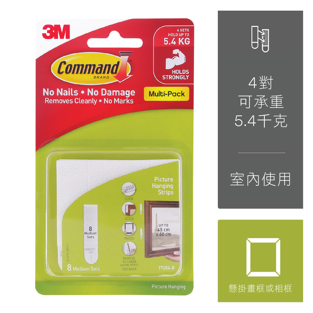 【貨品名稱】3M Command™ 17204-8 無痕™<白色>魔術貼-中型(8對裝)