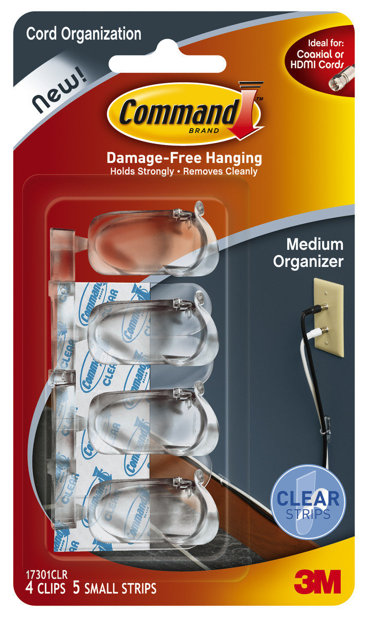 可用作處理電腦、各類電器和影音設備的線路。 此產品採用設計獨特且享有專利的可伸延感壓式雙面膠貼,黏力持久可靠,去除時,只需緊貼著表面拉,便會破壞膠貼原來的黏力,令膠貼自然脫落,故能做到貼得好穩陣,除後不留痕的神奇效能。 電線夾只需配合新的Command™ 無痕™ 膠貼即可重複使用。 每包無痕™中型電線夾#17301有4個電線夾及5片膠貼,適用於10毫米直徑的電線。 |