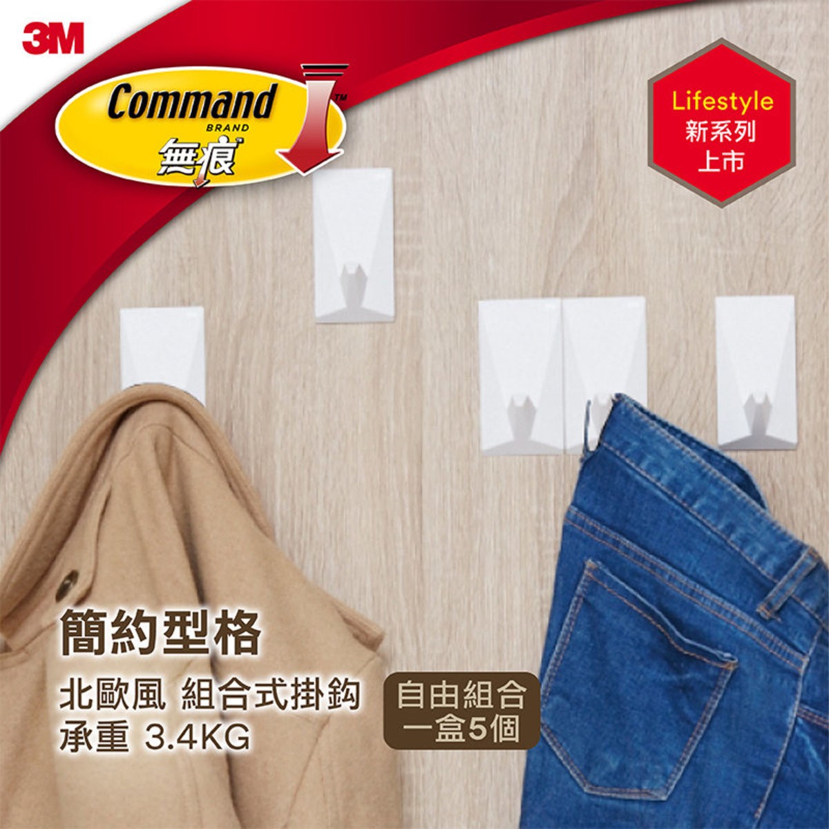 【貨品名稱】3M Command™ 17705 LIFESTYLE收納系列─組合式排鈎 (5鈎組) 白色