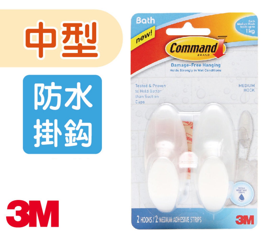 【貨品名稱】3M Command™ BATH18-ES 無痕™ 浴室<中型>防水掛鈎 (2個裝)