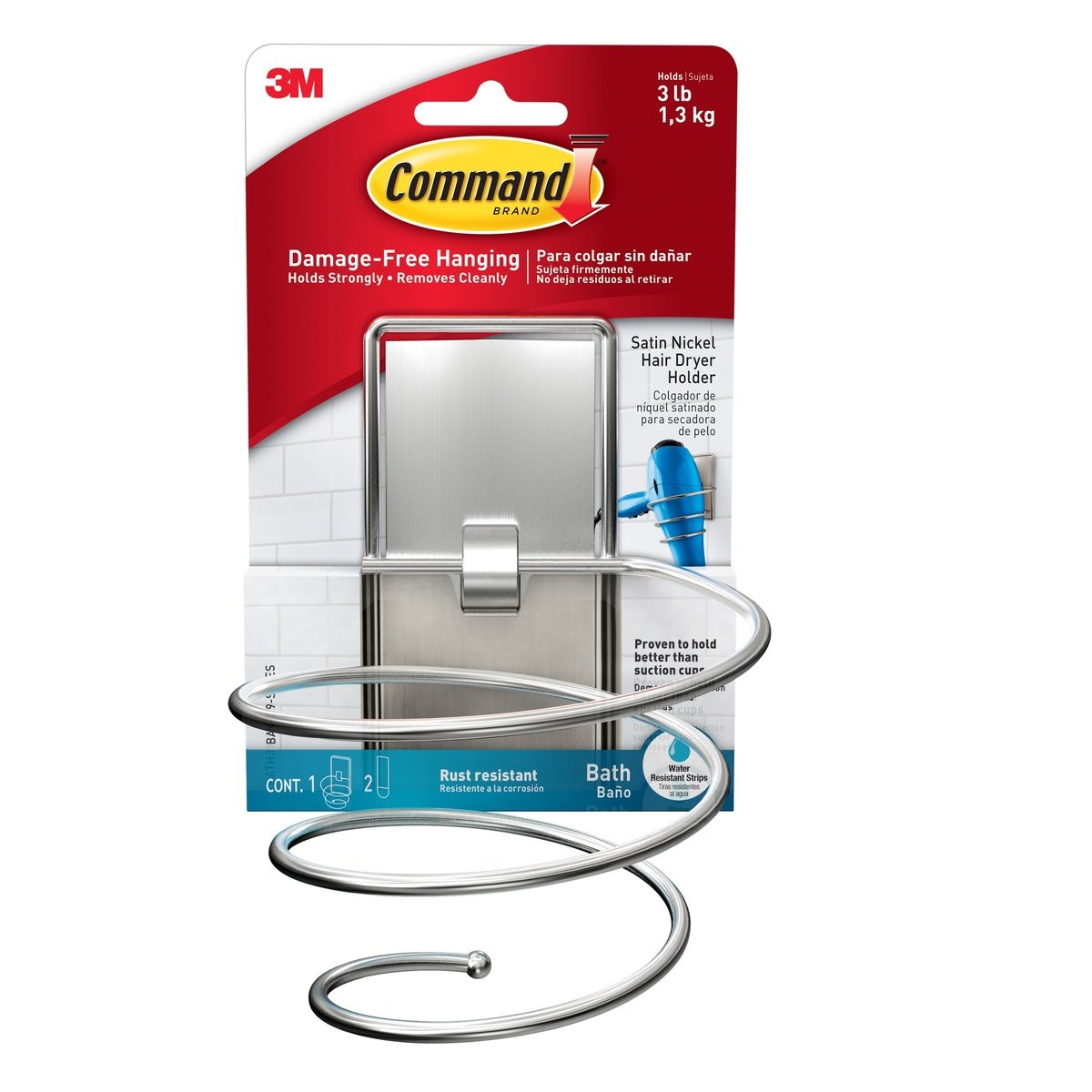 【貨品名稱】3M Command™ BATH39-SN 無痕™ 浴室金屬風筒座