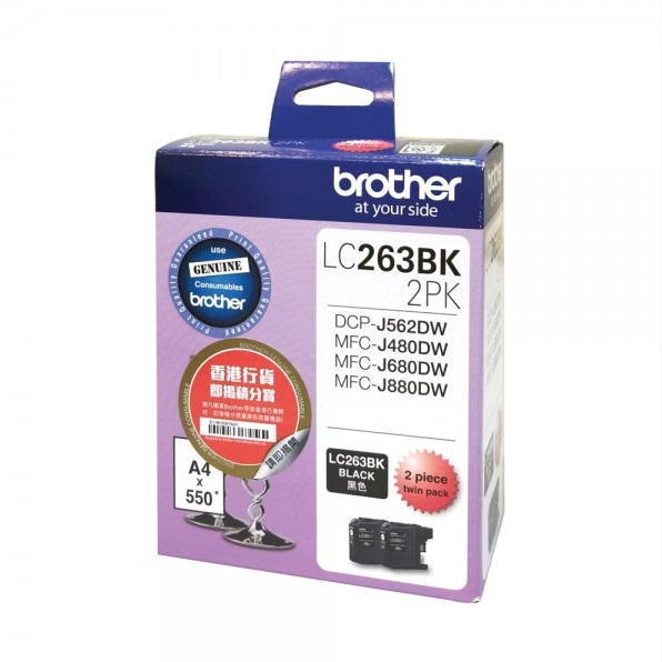 【貨品名稱】BROTHER LC263BK 2PK 黑色墨盒套裝 (高容量)