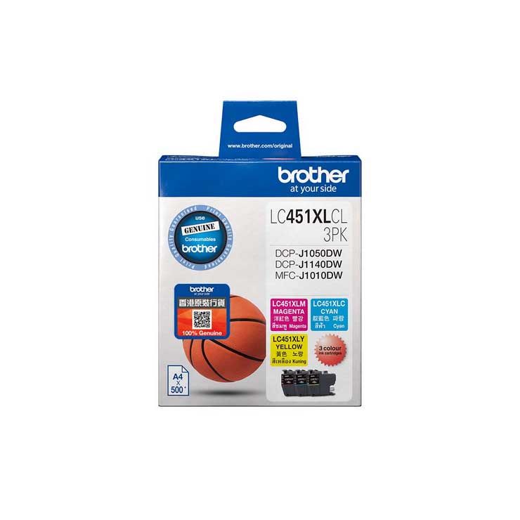【貨品名稱】BROTHER LC451XLCL 3PK 彩色墨盒套裝 (高容量)