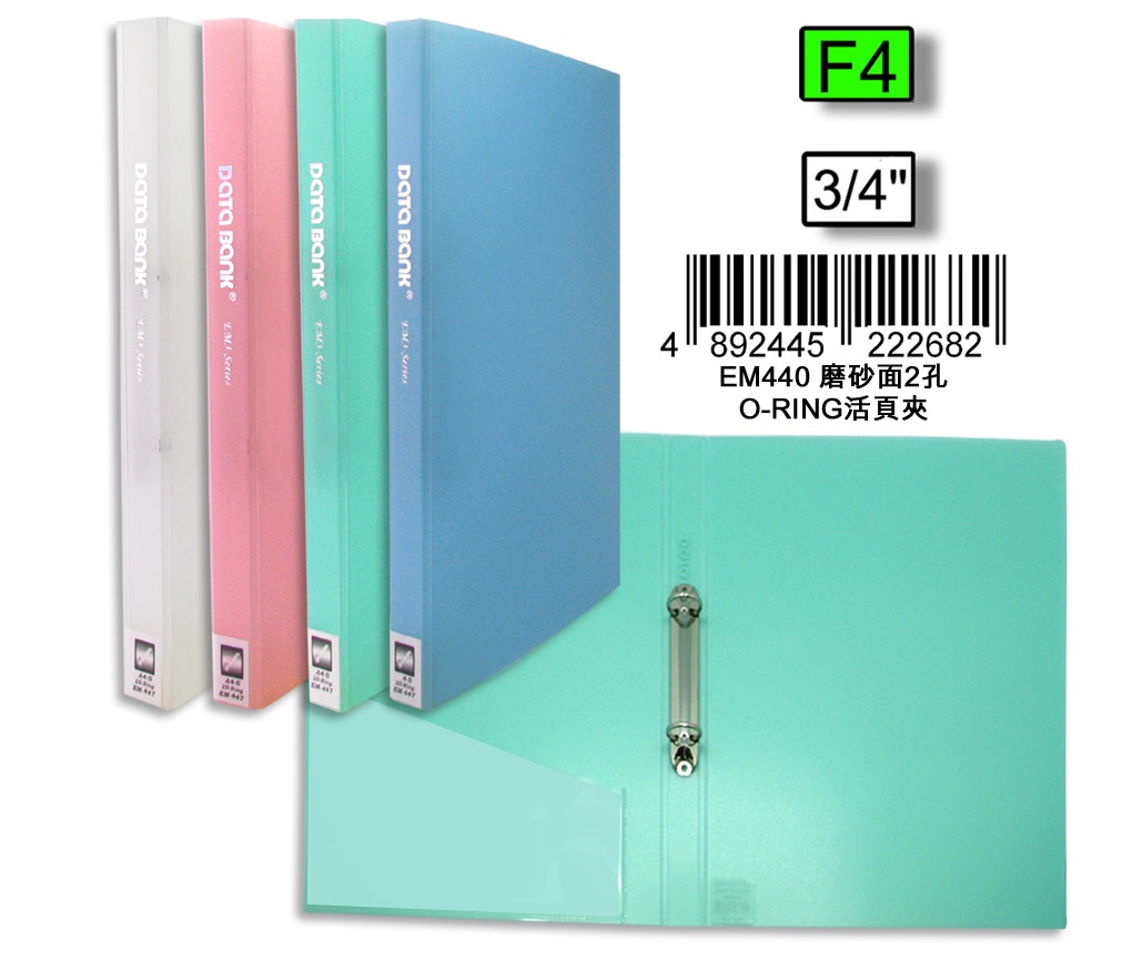 【貨品名稱】DATA BANK EM440 F4 2 O-Ring 磨砂透明活頁夾(3/4")