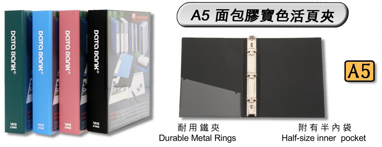 【貨品名稱】DATA BANK V515 A5 2D-Ring 面包膠實色活頁夾(1-1/2")