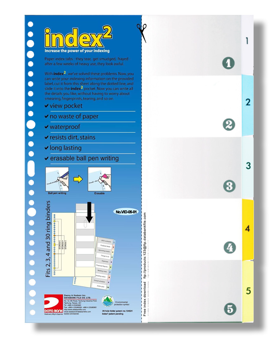 【貨品名稱】DATA BANK VID-05 29孔 彩色透明分類索引 1-5