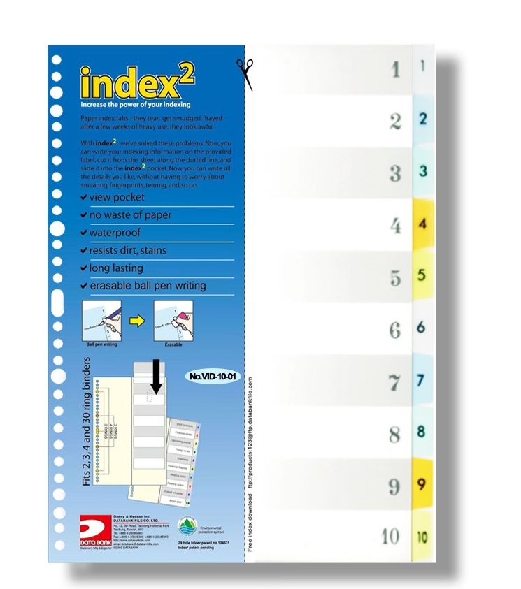 【貨品名稱】DATA BANK VID-10 29孔 彩色透明分類索引 1-10