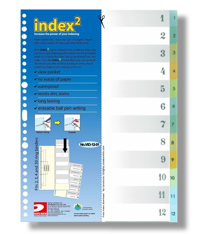 【貨品名稱】DATA BANK VID-12 29孔 彩色透明分類索引 1-12