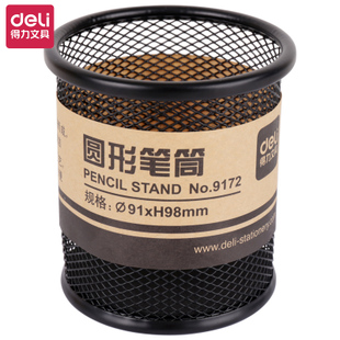 【貨品名稱】DELI 9172 圓型鐵絲網筆盅(黑色)