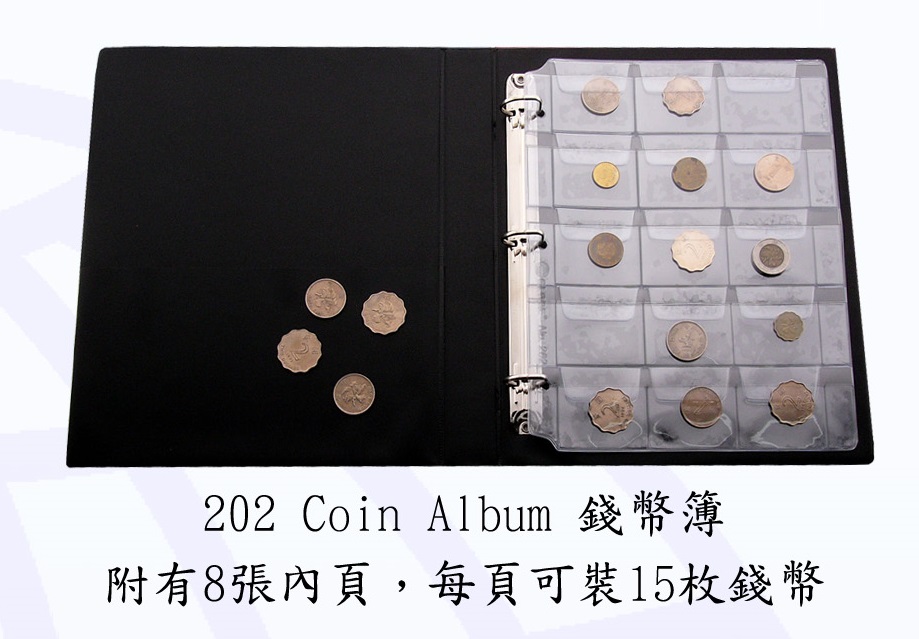 【貨品名稱】GLOBE NO.202 活頁錢幣簿 8's x 15ps