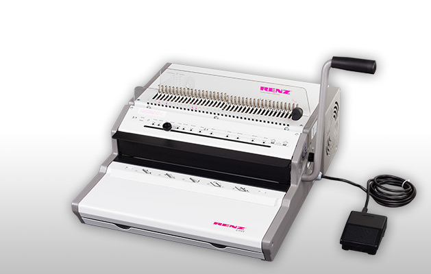 Heavy-duty, fixed pitch, electric desktop punching and RENZ RING WIRE®binding machines for all kinds of book and calendar production. Designed for the production of high volumes of documents of all sizes quickly and easily.